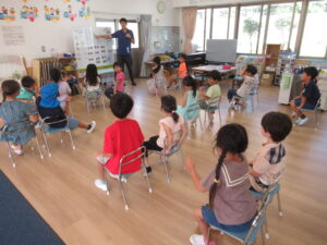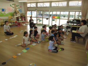 また、避難のポイントである『お・か・し』と『お・も・ち』をみんなで確認し、本当に火災が起こり避難する時には絶対に戻ってはいけないことを学んだ子どもたちでした。