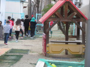 今日は気温が低く寒かったので、保育室にすぐに戻りました。