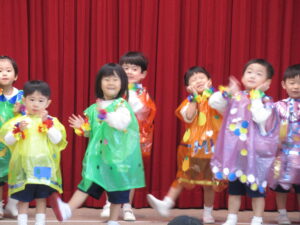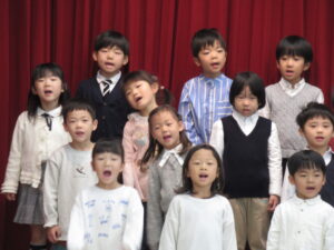 プログラム9番、年長青緑組のみんなによる歌「あしたははれる」です。歌詞の意味を考え、友達のことを思い浮かべながら歌えましたね。さすが年長さん、すてきな歌声でおうちの人も感動していましたね。