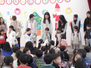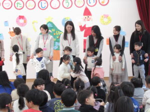 子供たちはサンタクロースと会えて大喜び。「せっかく、サンタさんが来てくれたんだから、一緒に歌おう」と子供たちが誘い、赤い鼻のトナカイを歌って楽しいクリスマスを過ごしたのでした。