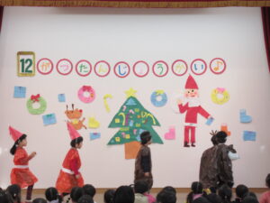 12月17日火曜日、今日は12月の誕生児をお祝いする「クリスマス誕生会」を行いました。