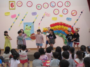 6月20日金曜日、6月誕生児をお祝いする「あめ誕生会」を行いました。