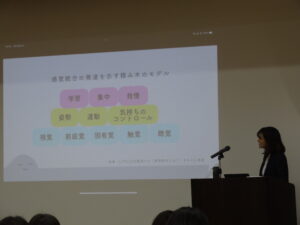 参加者からは、「『子どもの発育の根幹には、感覚の発達が関係している』というお話を特に興味深く拝聴しました。今まで意識したことがない観点だったので、今までの子育てではどうだっただろう、と思い返すと、あまり『感覚を育てる』という点には重きを置いていませんでした。体幹といった体を支える能力にも関係してきますし、これから楽しく良い刺激をたくさん与えてあげたいと思いました。」「今回のお話を通して、癇癪ややる気の無さが、さまざまな感覚と深く関係していることを初めて知り、とても驚きました。これまで行動や気持ちの問題として捉えていましたが、感覚の視点から理解することで、子どもへの関わり方を見直す大切さを感じました。具体的な遊び方の例を教えていただいたことで、日常の中でもすぐに取り入れられそうだと思いました。今後は、教えていただいたポジティブな遊び方を参考にしながら、楽しく実践していきたいです。貴重なお話をありがとうございました。」などの感想が集まっています。