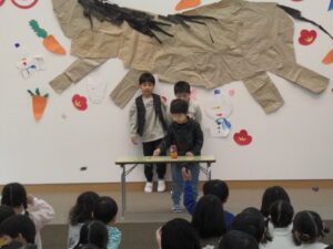 「みんなも得意な技を教えてね!」という年長出し物係さんの終わりの言葉で、得意技ショーは幕を閉じました。