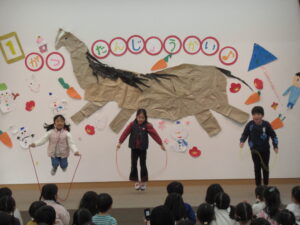 2組目は、縄跳びをします。3人とも軽やかに跳びました。