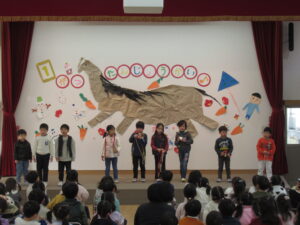 1月23日金曜日、今日は1月の誕生児をお祝いする「うまどし誕生会」を行いました。