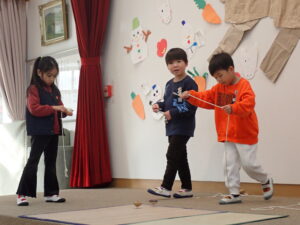 この後も、美味しいおやつを食べて、寒さを吹き飛ばし、たこあげや縄跳び、鬼ごっこなどをして元気に遊ぶ子どもたちでした。