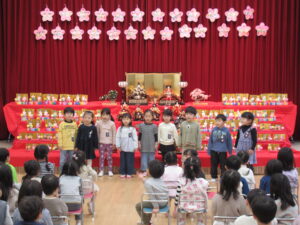 3月3日火曜日、今日は3月誕生児をお祝いする「はるまつり誕生会」を行いました。