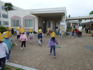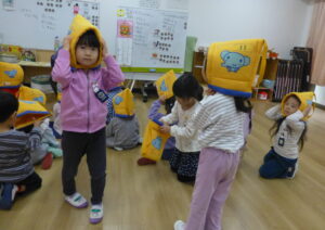 最後に副園長先生から、「みんな上手に避難できましたね。地震は怖いですが、先生たちと落ち着いて避難しましょう。必ず守ります。」と講評をいただきました。