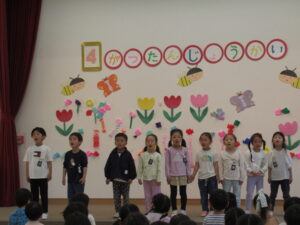 今日は、4月生まれのお友達をお祝いするちゅうりっぷ誕生会です。