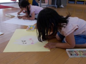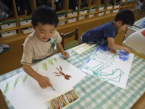 年長さんでは、男の子達が楽しそうに動物を描いています。