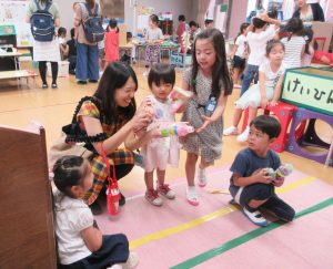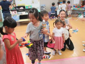 7月3日 水曜日。今日は園庭開放で、かわいいお客さんとおうちの人が幼稚園に来ました。