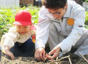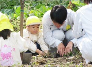 次回の交流の11月は、幼稚園の畑で作ったお野菜で収穫祭をします。
