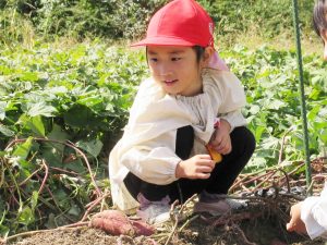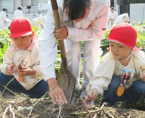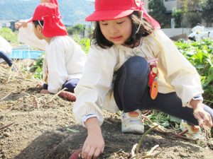 収穫の秋!地面がとっても固いこと、地面の中でちゃんとおいもが育っていること・・たくさんの発見がありました。