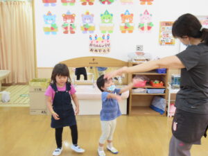 お部屋でダンスを楽しんだり、園庭で遊んだり。やりたいこと、試したいことがいっぱい!