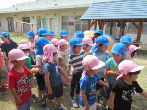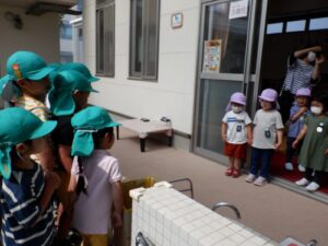 まず、年長児は年少児を誘いに行きます。