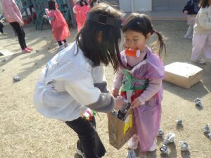 年長さんがいっぱい準備をしてくれたおかげでとても楽しい節分ごっこになりました。
