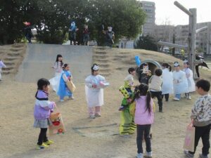 一方、年長児は年少児、年中児に節分ごっこを楽しんでもらおうと話合いました。どうやって登場しようか、どうやって鬼になろうかと考え、この日には準備は万端です。